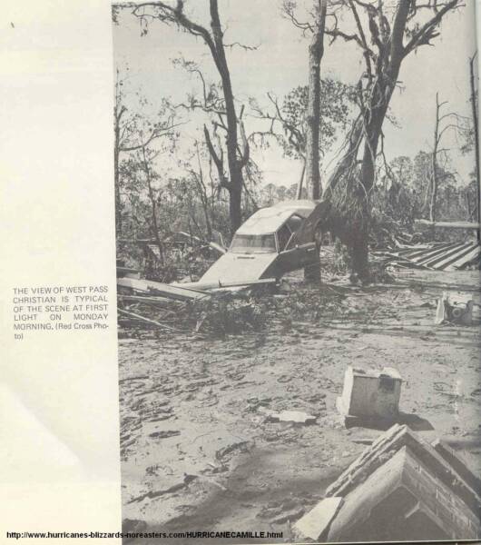 On the night of August 17, 1969 Hurricane Camille hit the Mississippi Gulf Coast. Many had scoffed at the forecast of unprecedented high winds and expected a rising tide, but in the early morning hours of August 18th were firm believers. Final data on the storm reported wind velocity in excess of 210 miles per hour and a tidal surge in excess of 24 feet topped with at least a 10 foot sea. Many of those who refused to believe the forecast and stayed at home to ride out the storm lived to regret it. Some did not live through it. The latest survey reveals l34 deaths; 27 missing; 8,931 injured; 5,662 homes destroyed and 13,915 suffering major losses. This is not counting the loss of businesses, other structures, and much of the natural beauty of the Mississippi Coast. The total destruction area of Harrison County alone was 68 square miles. Because of ample warning the death toll was not as high as in some previous hurricanes, but the destruction was unprecedented in United States history to that time.